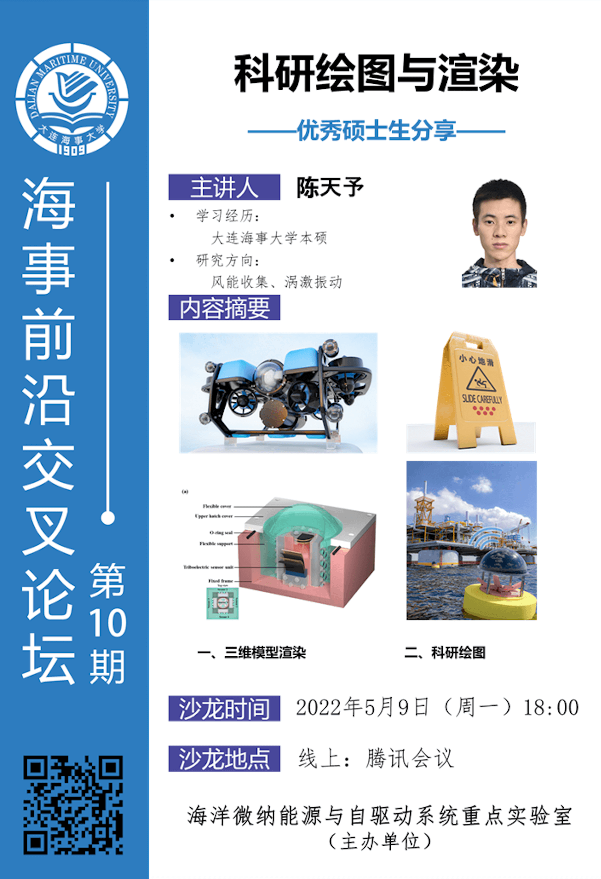 海事前沿交叉论坛第10期--优秀硕士生专场,由陈天予硕士生主讲,要点包括Blender等软件的操作和技巧。