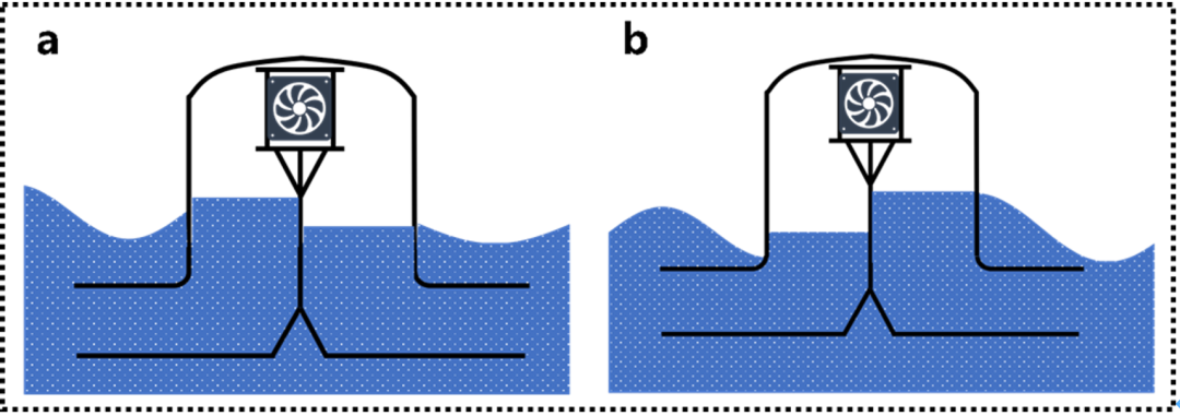 图6:双腔后弯导管浮标 (BBDB)利用两导管内气压差的变化带动透平进行发电