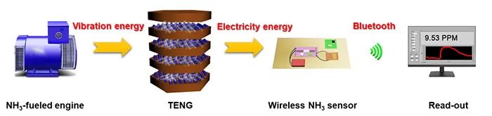 近日,大连海事大学轮机工程学院徐敏义教授团队与大连化物所化学传感器研究组(106组)冯亮研究员团队合作,在氨能船舶的氨泄漏监测方面取得新进展。合作团队提出了一套完整的无线传输自供电传感系统,包括基于蜂窝状摩擦纳米发电机(TENG)的发电系统、基于碳纳米管掺杂的聚吡咯(CNTs-PPy)的氨检测系统,以及信号采集传输系统等。
