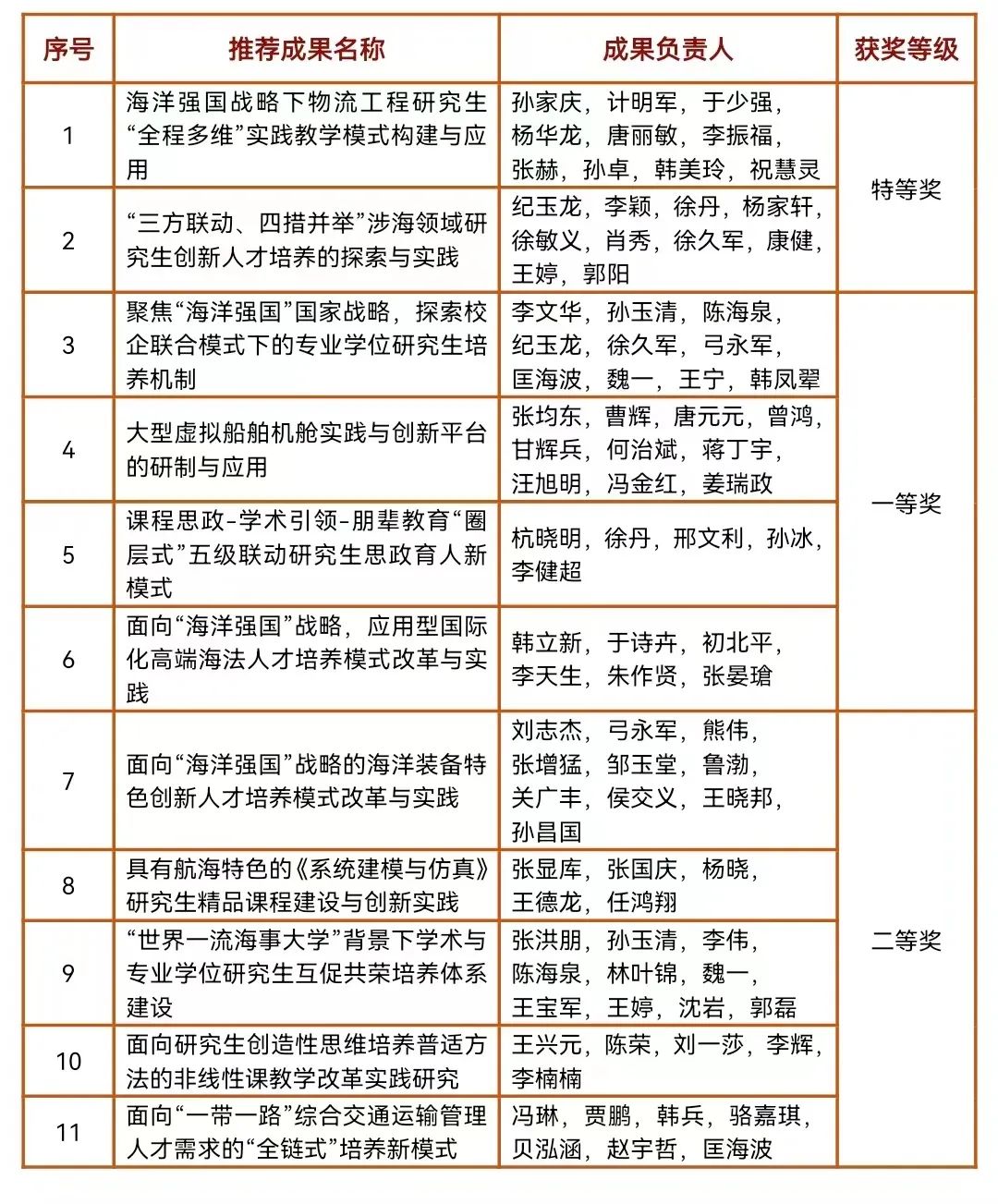 - 近日,2022年辽宁省研究生教育教学成果奖评选结果揭晓,我校喜获成果奖11项其中特等奖2项,一等奖4项,二等奖5项,获奖等级和数量创历史新高。其中,课题组参与的“三方联动、四措并举”涉海领域研究生创新人才培养的探索和实践荣获一等奖。