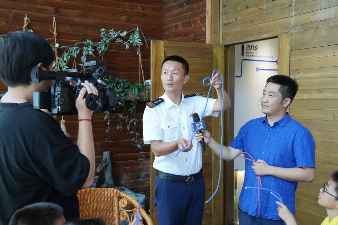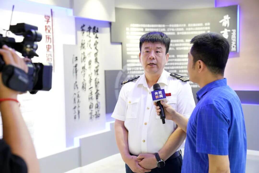 - 在国内首个航海教育博物馆内,我校航海历史与文化研究中心主任韩庆教授介绍了大连海事大学的校史及中国高等航海教育发展史。