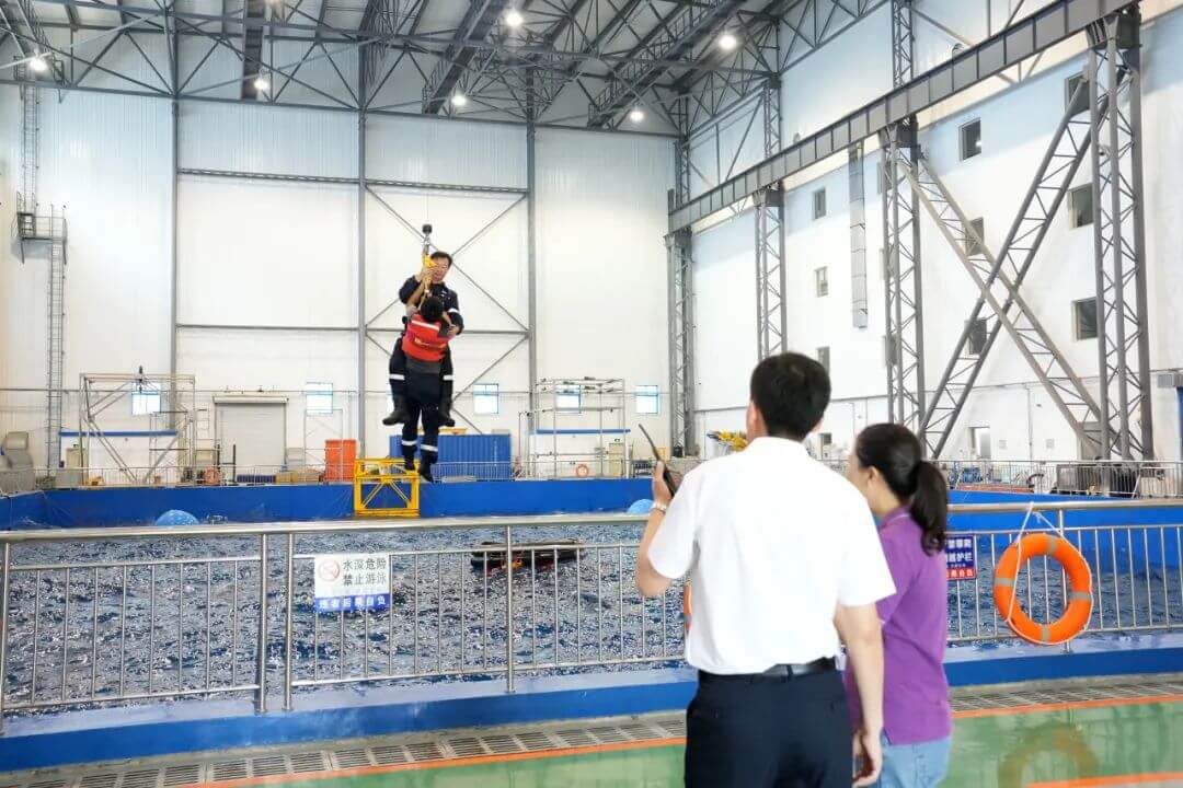 - 在实验室,船舶与海洋工程学院冯凯老师介绍了辽宁省救助与打捞工程重点实验室,并现场组织相关老师模拟了救助打捞过程。
